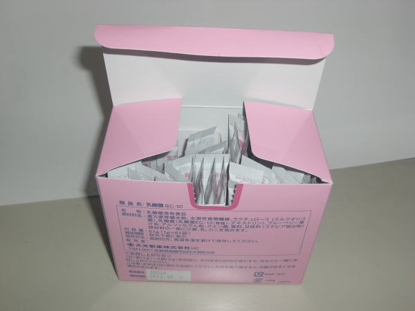 今回、私が試したのは久光製薬の乳酸菌でした。乳酸菌を発売しているところはたくさんあるのですが、ここが販売しているのは、乳酸菌が一兆個も含まれているというもので、他では大体10億個ぐらいで、単純に数が多いという浅はかな考えで決めてしまいました^^;